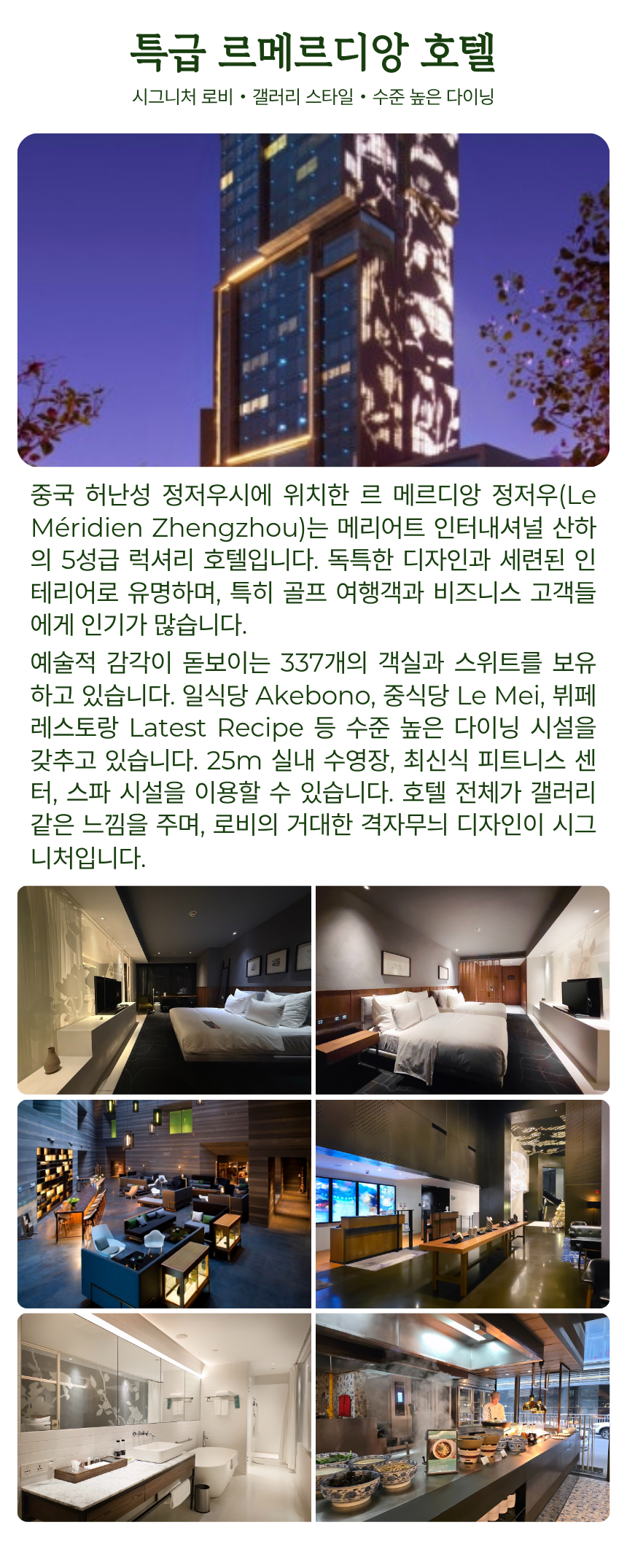 특급 르 메르디앙 정저우 호텔 숙박 (2인 1실)