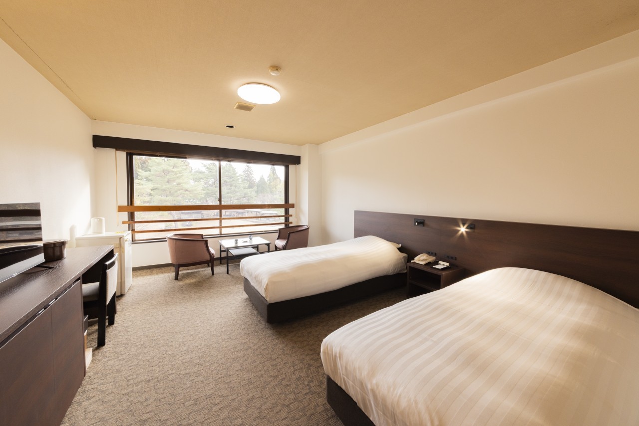 객실 욕실에는 기본 세면시설만 구비되어 있으며 샤워시설은 없습니다. 온천 시설에서 샤워 및 온천 이용 후 객실로 이동하시는 방식입니다.